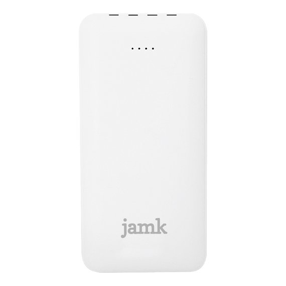 10 000 mAh Li-polymeeriakku (3.7V / 37Wh). Tulo: Micro/USB-A. Kaapeli: 5V/2A. Lähtö: USB-C/Lightning/mikrokaapeli: 5V-2.1A (max). Latauskaapeli: USD-A mikrokaapeli (ei tiedonsiirtoon). JAMK kaiverrus.
