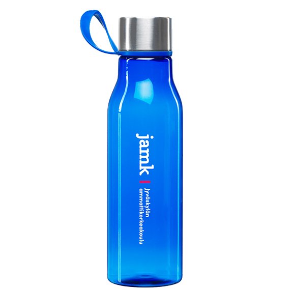 Pullo on valmistettu 50 % kierrätysmuovista. Se sopii niin kuntosalille kuin toimistollekin. Pulloa on kätevä kantaa trendikkäästä silikonilenkistä ja voit ripustaa sen roikkumaan vaikka kuntopyörän tankoon. Ainoastaan käsinpesu.